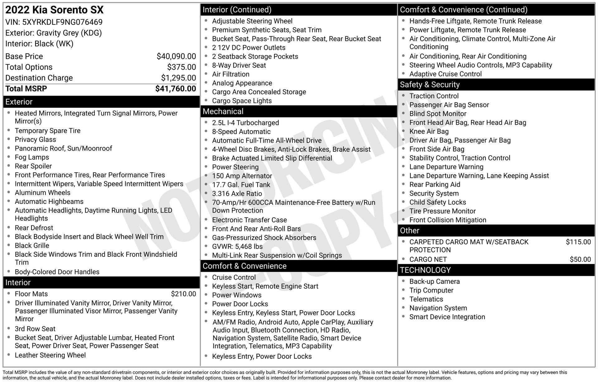 - Vehicle Name: Kia Sorento